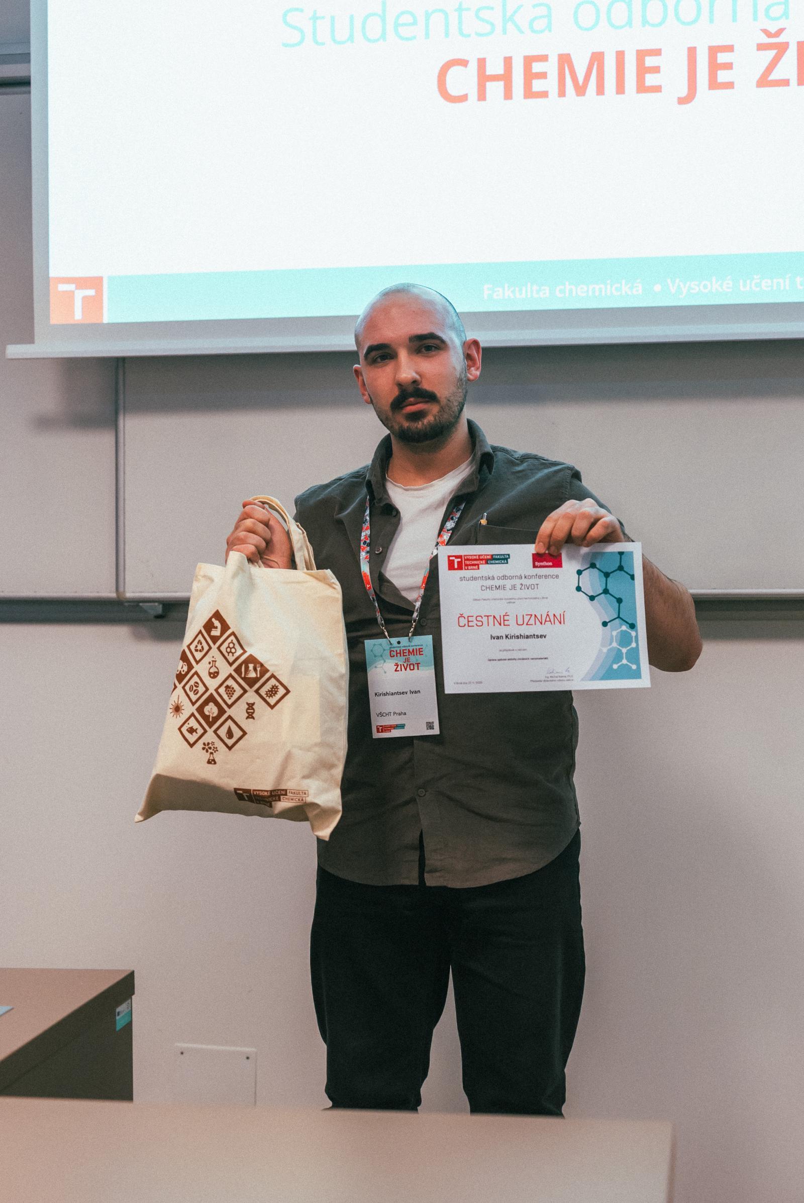 - Čestné uznání obdržel Ivan Kirishiantsev za příspěvek Úprava optické aktivity chirálních nanomateriálů.