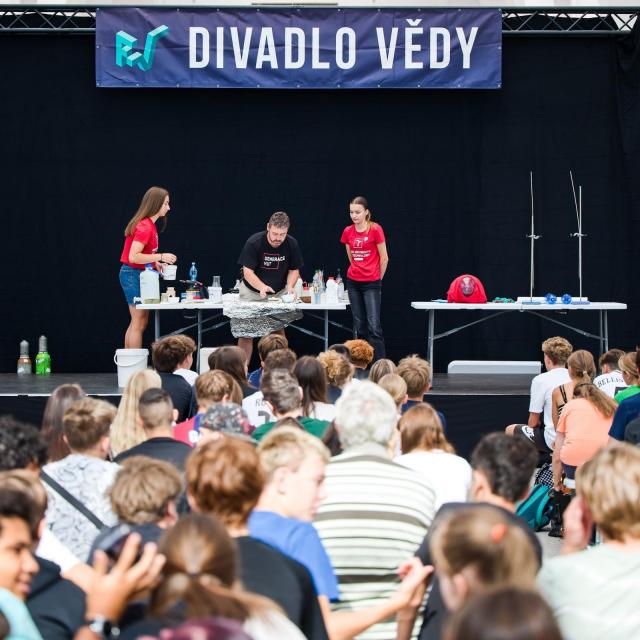 Popularizátoři – chemie není nuda! Jezdíme na akce pro veřejnost i do škol, třeba na Festival vědy a techniky nebo Festival planet a mnoho dalších. Ukazujeme krásu a zábavnou stránku chemie i těm, kteří ji zatím neznají. Děláme science show, workshopy a další popularizační aktivity.