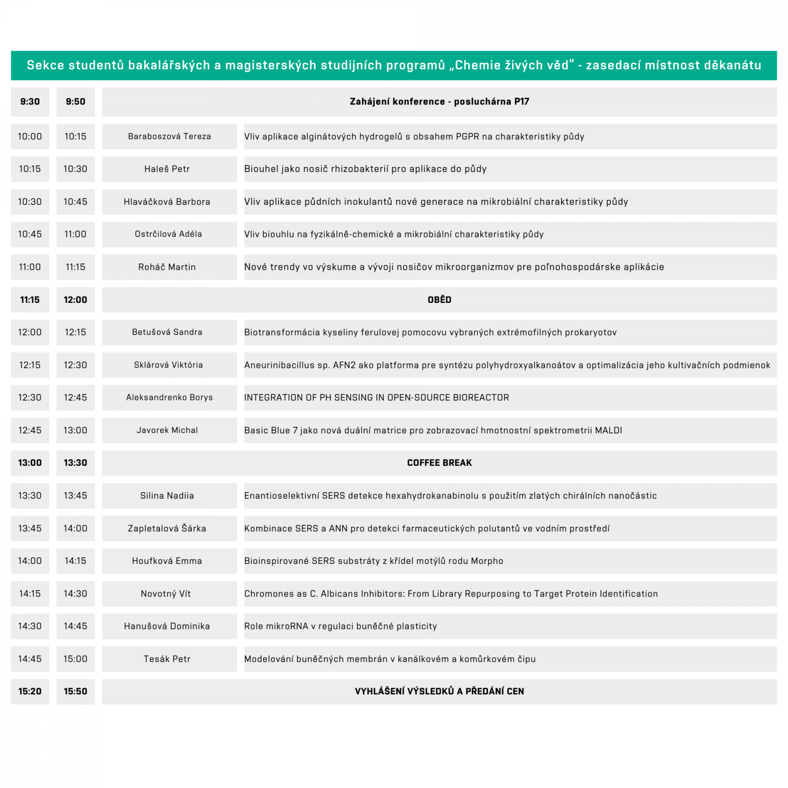 STUDENTSKÁ KONFERENCE „CHEMIE JE ŽIVOT“