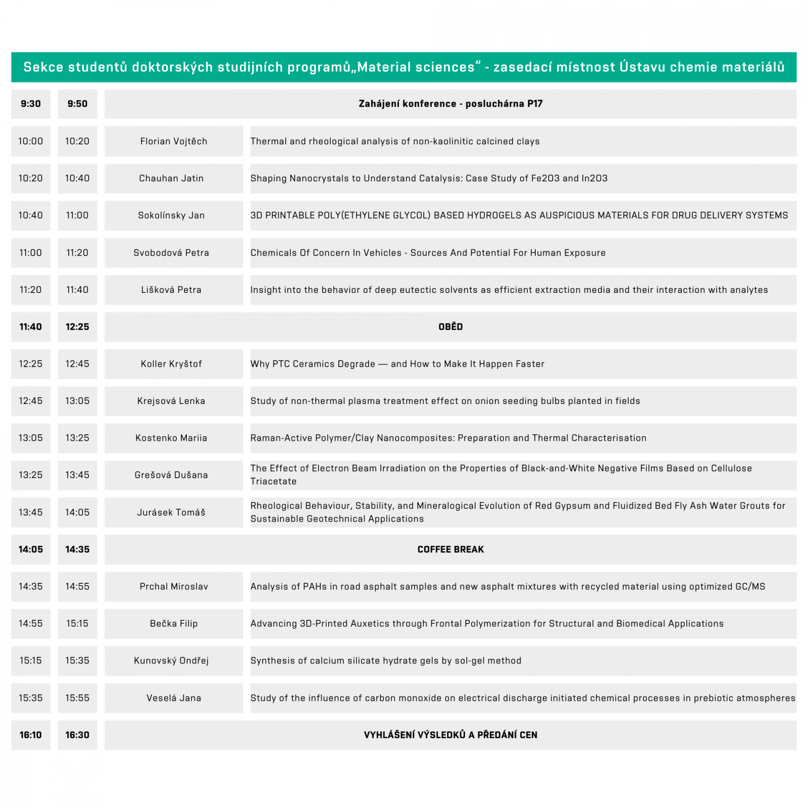 Konference bude zahájena 27. listopadu v 9:30 hod v posluchárně P17 na Fakultě chemické VUT v Brně.